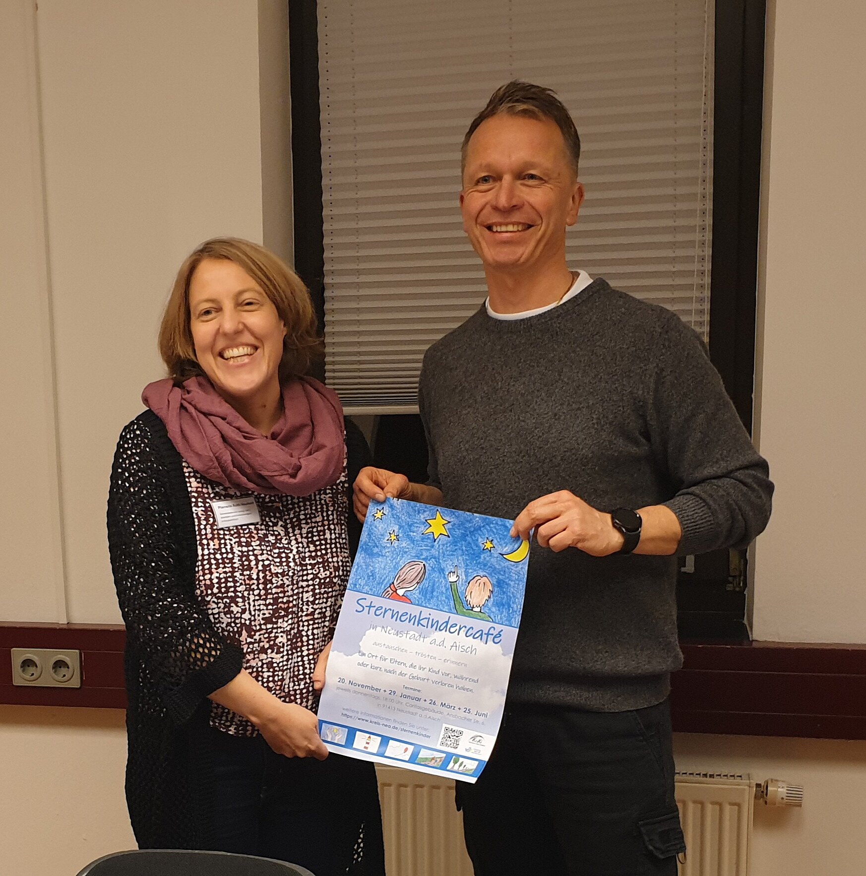 Am Donnerstag, 29. Januar 2026 um 18:00 Uhr findet das zweite Treffen des Sternenkindercafes statt, erneut in den Räumen der Caritas in der Ansbacher Str. 6 in Neustadt a.d. Aisch. Eine Anmeldung ist nicht erforderlich. Weitere Treffen finden jeweils donnerstags am 26. März und 25. Juni 2026 in Neustadt a.d.Aisch statt. Alle Menschen, die ein Sternenkind in ihrem Herzen tragen – egal wie lange der Verlust zurückliegt – sind herzlich eingeladen. Weitere Informationen unter www.kreis-nea/sternenkinder oder bei KoKi – Frühe Hilfen unter Tel. 09161 92-2540 oder -2541.