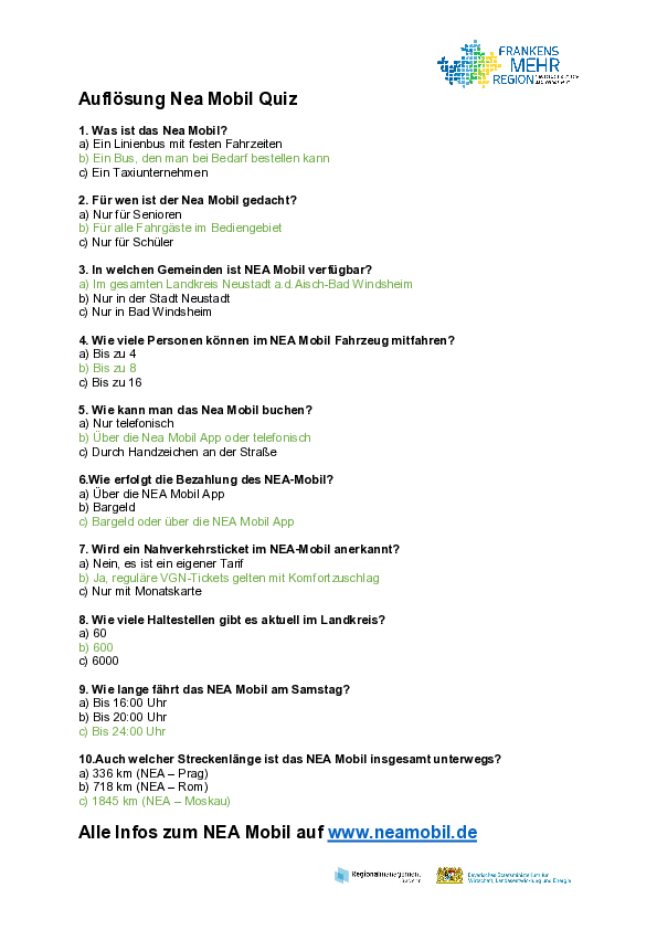Bei einem Quiz lud das Regionalmanagement ein, das eigene Wissen rund um das NEA Mobil zu prüfen. Vielen Dank für die Teilnahme und das große Interesse: von 379 Personen wussten 195 die richtigen Antworten.