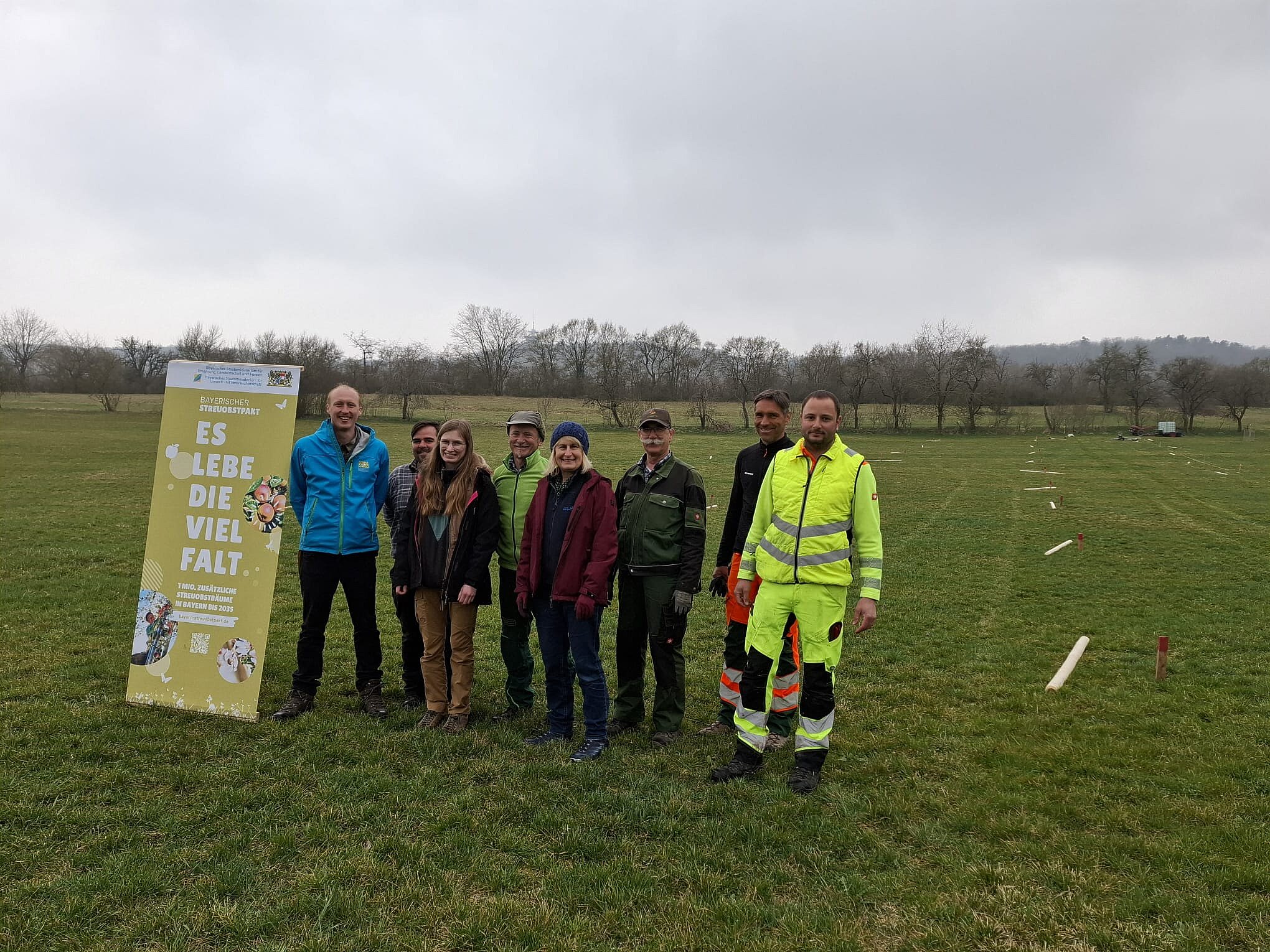 Welches Verfahren ermöglicht es Streuobstbäumen am besten, sich auf der Fläche zu etablieren? Dieser Frage wird in einem praxisorientierten Pflanzversuch im Rahmen des Projekts „Mehr Baamaland für Frankens Mehrregion“ des Landschaftspflegeverband Neustadt a.d.Aisch-Bad Windsheim in Zusammenarbeit mit der unteren Naturschutzbehörde, der Stadt Burgbernheim und ausgebildeten Baumwarten nachgegangen. Den Startschuss bildete diese Pflanzaktion. Die Versuchsfläche im Burgbernheimer Gründlein stellt die Stadt zur Verfügung. Finanziert wird das Vorhaben zu 90 Prozent auf Fördermitteln des Bayerischen Staatsministeriums für Umwelt und Verbraucherschutz.