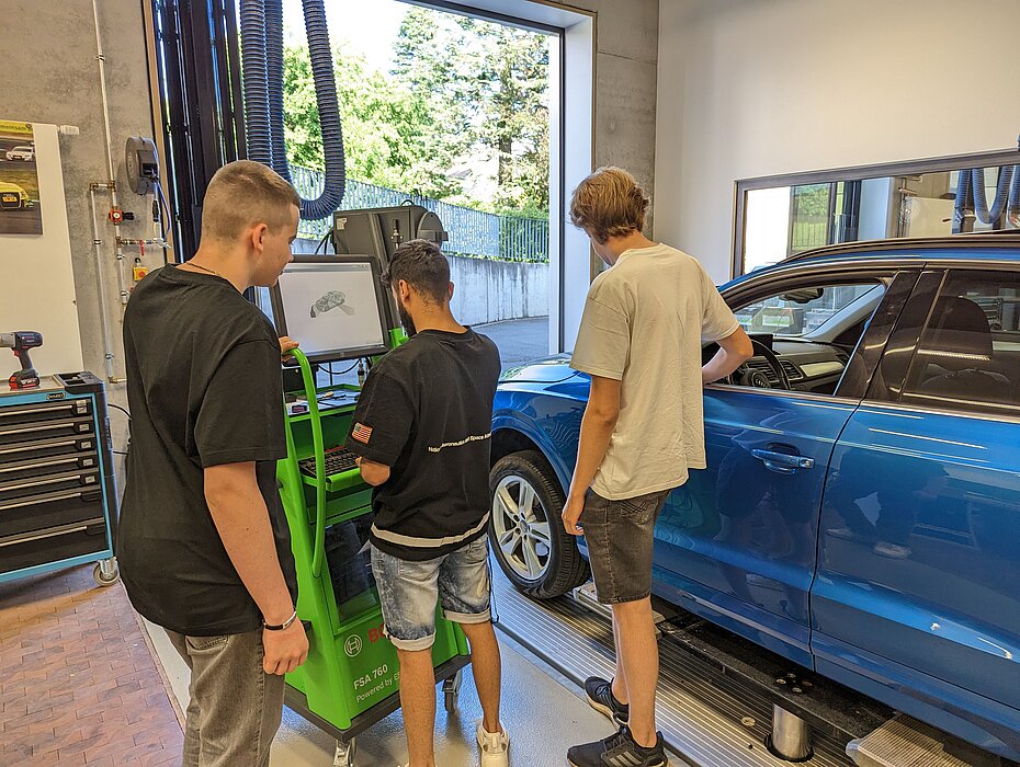 In unseren sehr gut ausgestatteten integrierten Fachräumen kannst Du Dein theoretisches Wissen in die Praxis umsetzen. Du erhältst umfassende Kenntnisse über Motoren, Antriebssysteme, Diagnoseverfahren, Fahrzeugelektronik und eMobilität. Unsere erfahrenen Lehrkräfte begleiten Dich die 3,5 Jahre Deiner Ausbildungszeit und stehen Dir mit genügend Know-how zur Seite.