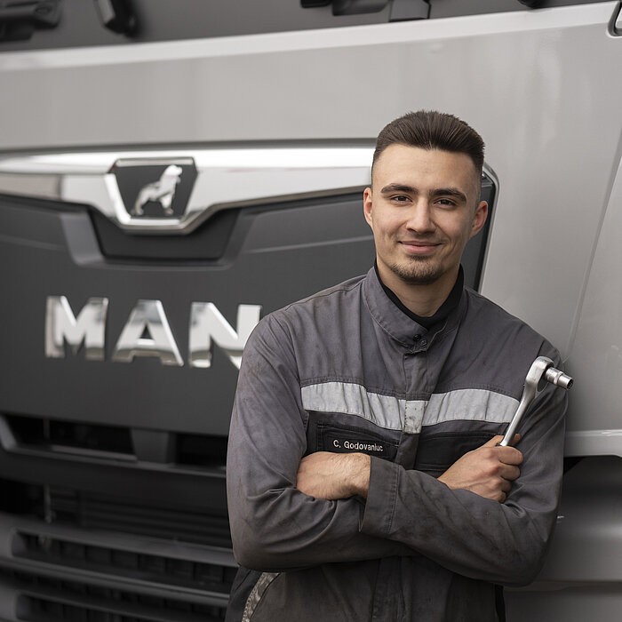 Du lernst alles über Wartung, Reparatur und computergestützte Diagnose an modernen Nutzfahrzeugen der Marke MAN.
